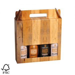 4-fles FSC MIX Bierdoos Houtnerf draagmodel longneck 30-33cl.