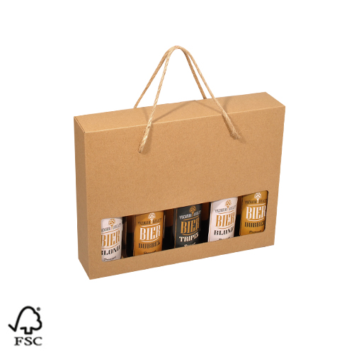 5-fles FSC Mix bierdoos naturel+ koord longneck 30-33cl.