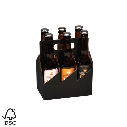 6-fles FSC MIX bierdoos Zwart Lino draagkarton – longneck 33cl. & vichy 25cl.