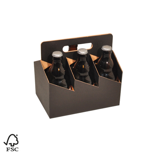 6-fles steinie “dikbuik” FSC Mix bierdraagkarton lino zwart