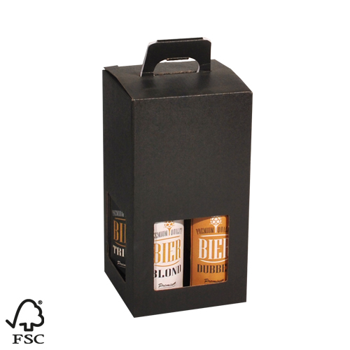 bierdoos t.b.v. 2-fles longneck + glas zwart FSC MIX draagmodel