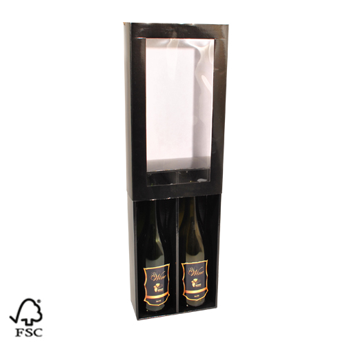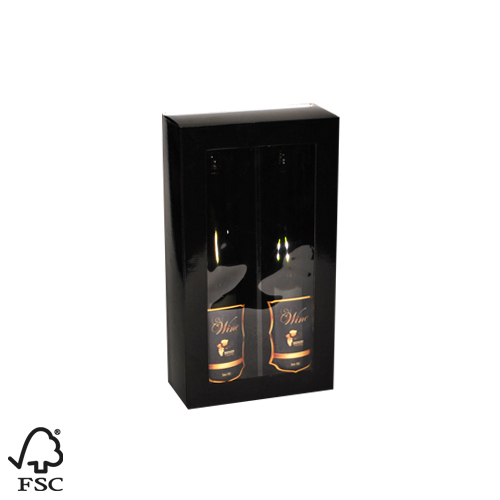 drawerbox sleeve 2-fles zwart met venster FSC MIX