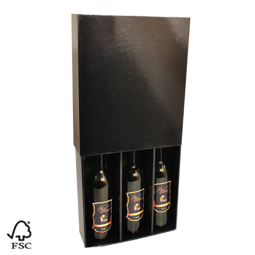 Drawerbox sleeve 3-fles Zwart EXTRA STEVIG FSC recycled 100%
