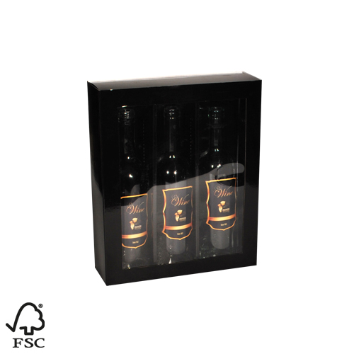 drawerbox sleeve 3-fles zwart met venster FSC MIX