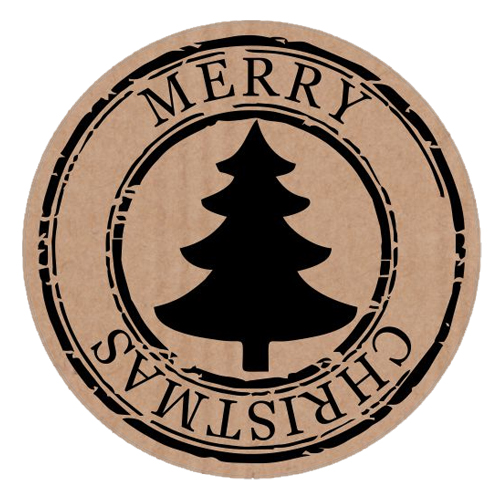 Etiket Merry Christmas kraft/zwart rond 35mm.
