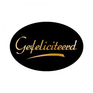 etiket gefeliciteerd mat zwart / metallic goud 37x25mm.