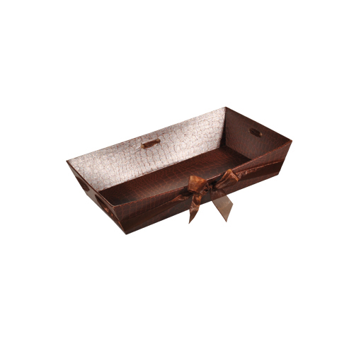 schaal leatherlook rechthoek bruin klein 330x200x70mm.