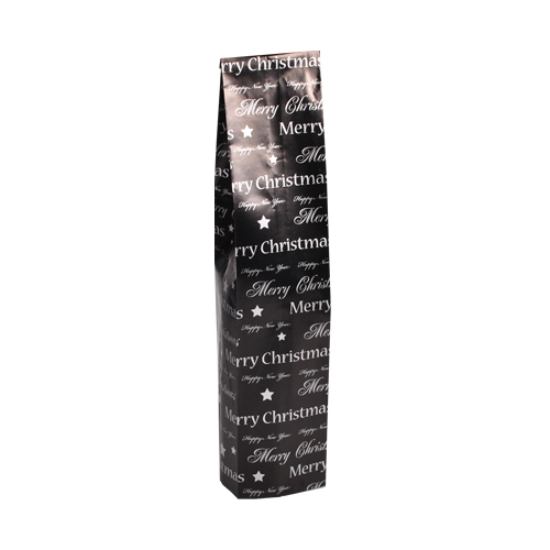 wijnfleszak merry christmas zwart/zilver smal met 2 nietjes in de bodem