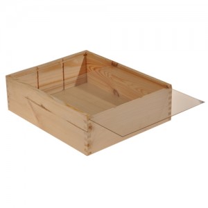 Schuifkisten zijn wijnkisten waarbij de deksels kunnen worden ingeschoven. Onze kisten zijn FSC gecertificeerd en worden dus gemaakt van duurzaam vurenhout. De schuifkist is van een zware kwaliteit en voorzien van een blokverbinding voor een optimale luxe presentatie van uw met zorg geselecteerde wijnen. Indien u geen tussenschotjes wenst, bijvoorbeeld daar u gebruik wenst te maken van onze fluwelen interieurs, dan kunt u ook de wijnkisten en de deksels als losse elementen bestellen. De kisten zijn compleet geschuurd en u zult dus geen splinters aantreffen. De bodem is geïntegreerd en uit 1 stuk vervaardigd dus beschadigingen aan tafels of toonbanken zijn uitgesloten. Kortom, deze wijnkisten zullen uw wijnen optimaal presenteren en mede ondersteuning geven aan de kwaliteit die u voorstaat. Desgewenst kunt u rondom de flessen de schuifkisten afvullen met houtwol of andere opvulmaterialen welke wij in ons assortiment hebben. Daarbij kunt u denken aan cellofaanwol, papierwol of curly Fill decoratief opvulmateriaal in diverse kleurstellingen. Wij hebben kartonnen verzenddozen voor deze wijnkisten beschikbaar in ons assortiment.
